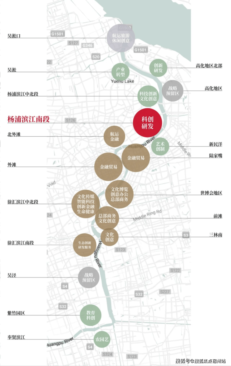 杨浦滨江总部聚集地示意图,仅供参考