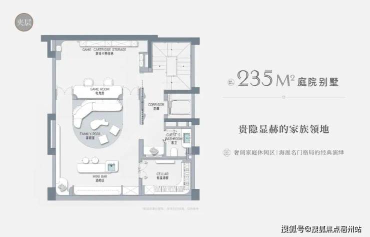 建面约235㎡联排户型为例,通过地上三层+地下两层的结构,构建起功能清晰的家族生活体系。