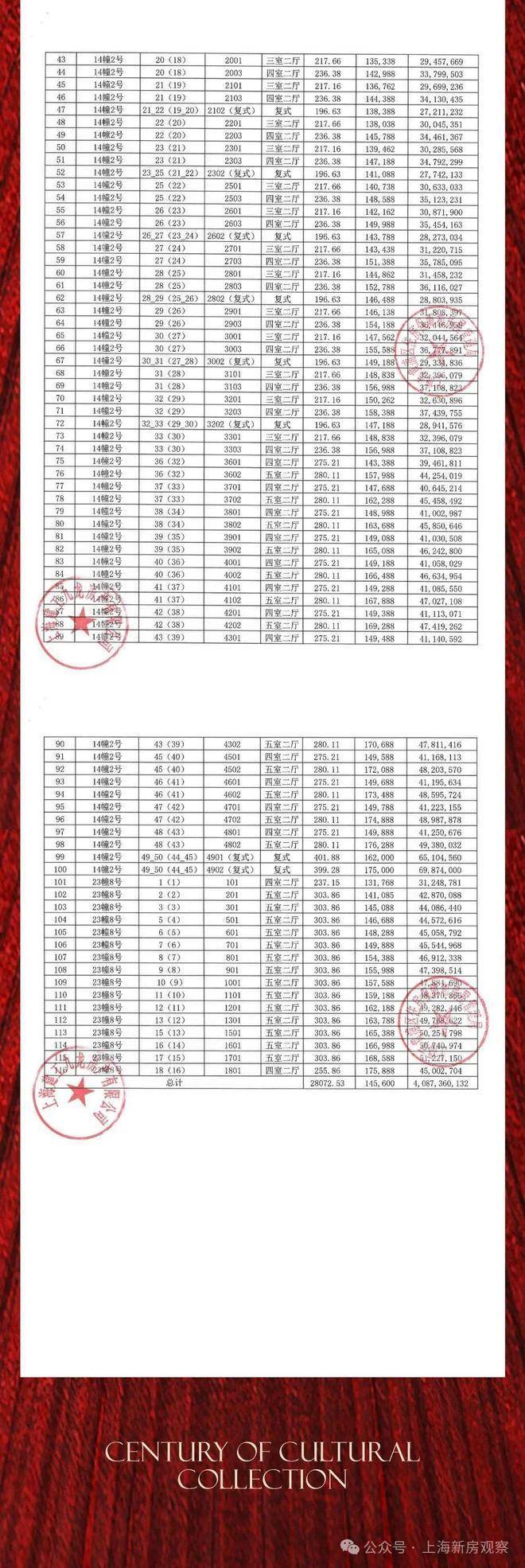 黄浦区「海玥黄浦源」少量建面约193-402㎡多种户型;均价14.56万/㎡!
