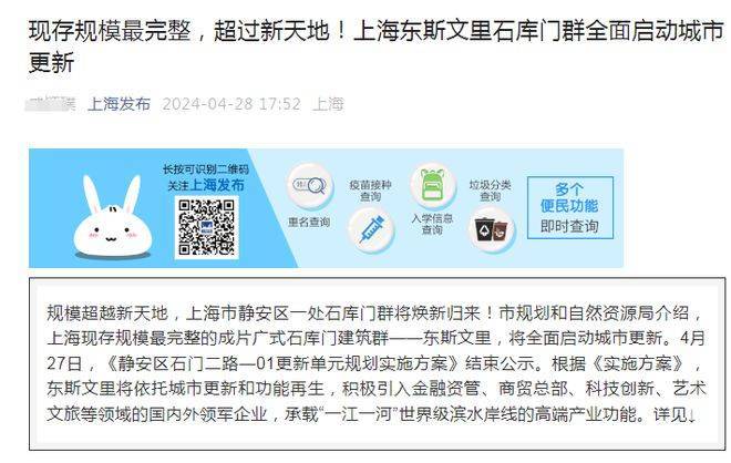 超越新天地不是我定义的,而是官微上海发布的标题!而官微之所以有这样的判断,是因为无论是定位、规模、能级还是业态,东斯文里都全面超越新天地!