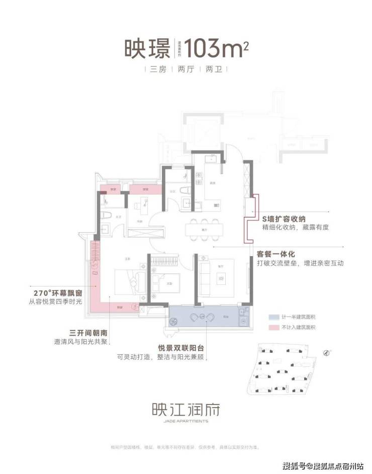 ②建面约103㎡3房2卫边套:品质改善的爆款户型,270°环幕飘窗!☑️☑️华润映江润府售楼处电话:400-1183-605☑️☑️