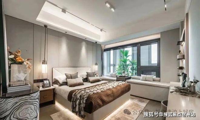 整体效果现代精致,十分符合当下年轻人的审美观;星级酒店式入户门,挑高约7米,宽约60米;石材金属线条背景墙加暖色系夜灯搭配,中庭花园水岛层叠、景墙错落,槭树青红间季节流转的温情脉脉展现,精致的水景让居住者仿若初入剧宴,感受剧目的艺术呈现……