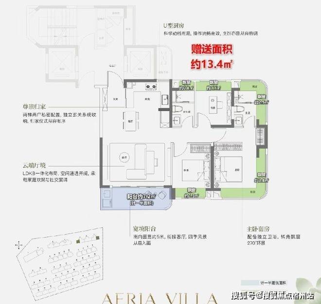 其次,这一户型配置了约9.8㎡的飘窗和约7.2㎡的阳台,✅✅联发金海雲墅售楼处电话:400 - 8824 - 258✅✅总附赠面积高达约13.4㎡。这样的附赠空间让户型的实得率突破了86%,而市面上同面积产品的实得率最高也只有75%。