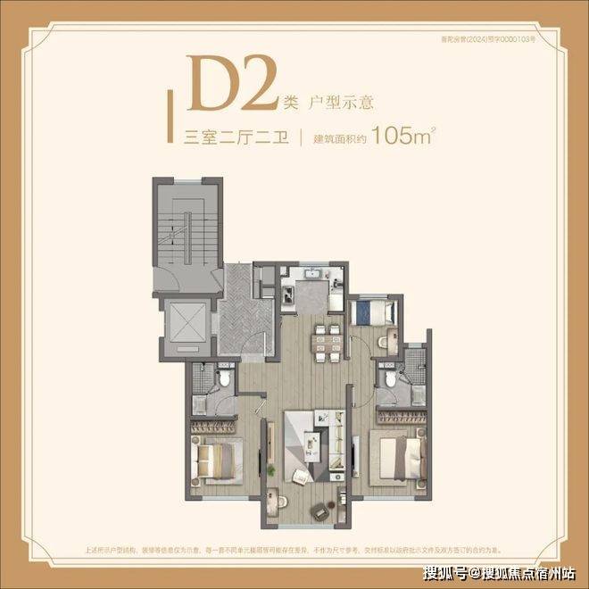 建面约105㎡3房总价约850万起;