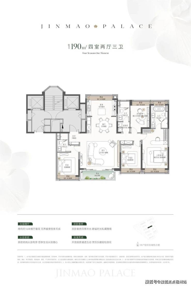 产品方面,预计将推出建面约110-190㎡3至4房产品,四种户型的飘窗与阳台空间都比较大。110㎡户型的阳台将次卧和客厅联通;123㎡是横厅设计;140㎡足足有七个飘窗空间;185㎡各个房间的空间更上一层。