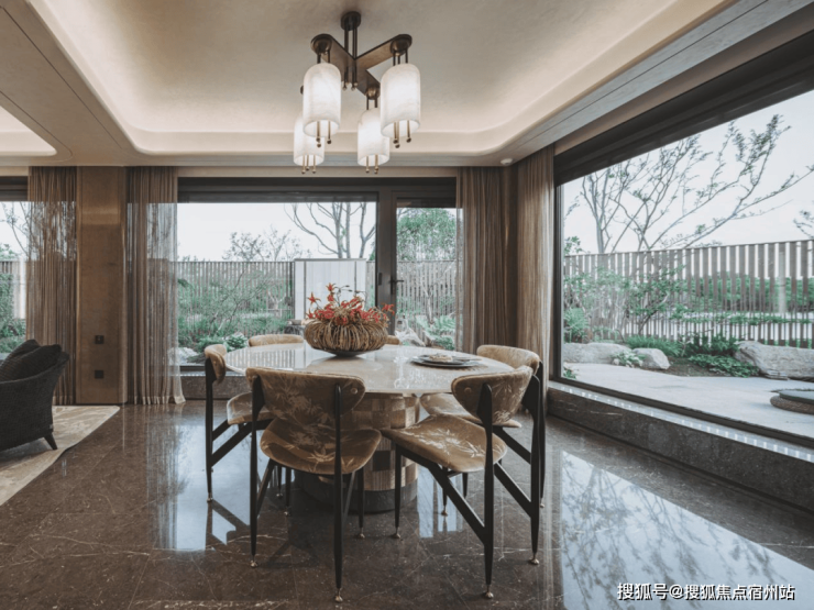古铜色铝板+木纹铝板+仿石铝板打造的立面,既保留了宋式雅韵,又兼具现代居住的质感;约3:7的大窗墙比,让阳光与风景能最大化涌入室内。这种“有文化、有美学、有质感”的墅居,恰好击中了高净值人群对“精神归属”的居住需求。