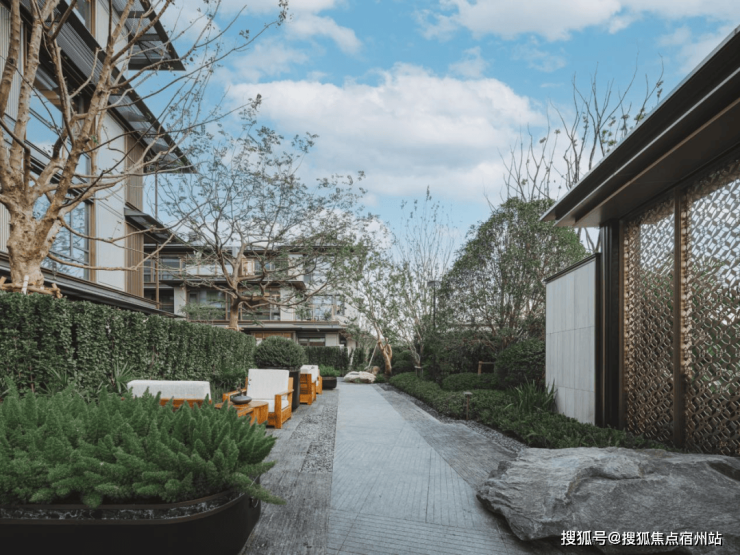 已开放的“归心森径” 更是惊艳众人---穿过宋式瓶门,百年罗汉松、珍品羽毛枫、乌桕、紫薇及造型黑松等名贵树种错落排布,以树石为笔、光影为墨,勾勒出四季流转的宋韵画境,让每一次归家都成为 “穿越千年风雅” 的身心洗礼。