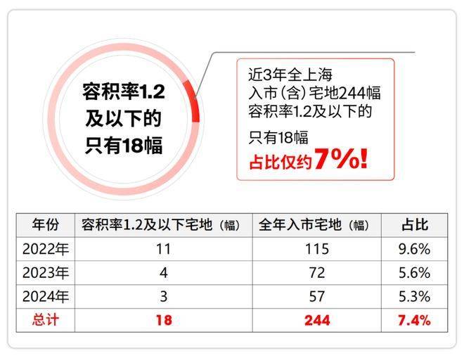 殊不知,真正的赢家早已在土地出让时定局——全上海1.2以下容积率宅地,正在走向绝版!一组数据揭开上海楼市的残酷真相: