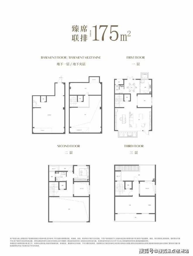 【国贸海上原墅】157-201m²联排别墅设计约5.65米层高地下室,一层客厅挑空约6.45米,还设计了类似天井内庭院空间(不计入建筑面积),这些灵动空间都能随业主心意改造。并且三层配备双露台,听风细雨惬意非凡。