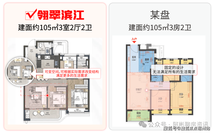 翎翠滨江不同于普通住宅,项目不仅仅可以作为一个宽绰的正3房户型。