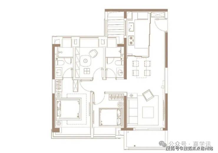 建面约100㎡3房2厅2卫,功能性和尺度感完美结合的3房户型。