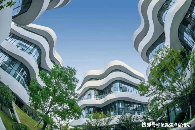 在建筑设计上,每栋单体建筑的外立面由似“山谷”峰峦叠嶂,富有韵律的白色曲面构成,打破了传统科创园区方正死板的造型特征。
