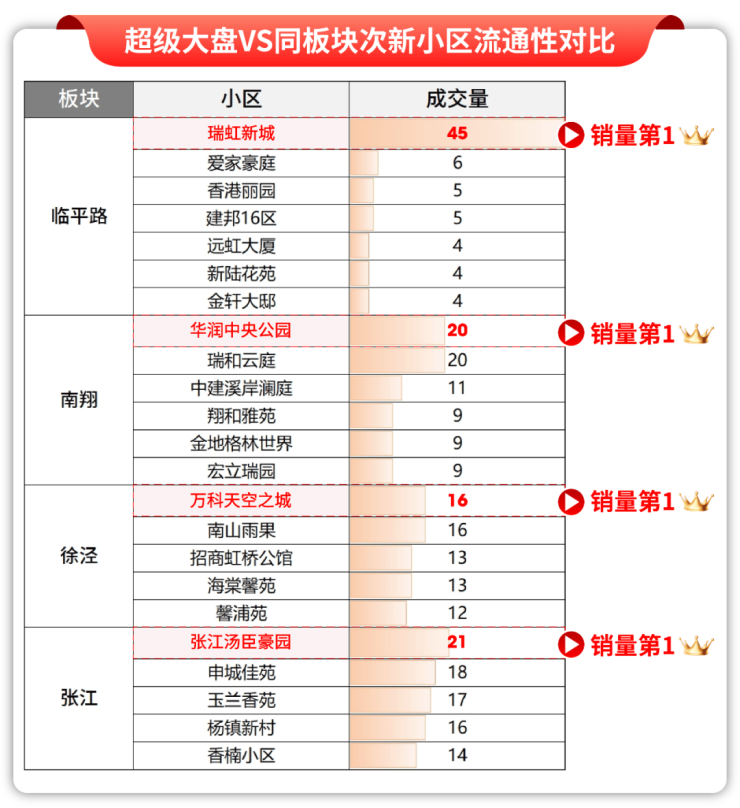 从过往表现来看,但凡能定鼎区域大盘的项目,比如瑞虹新城、汤臣豪园、华润中央公园、万科天空之城,首先销量即流通性区域第一!