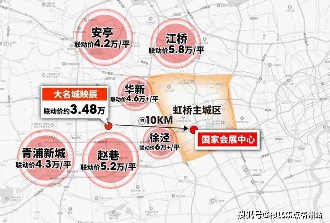 而项目联动价只有约3.48万/㎡,入手门槛远远低于周边板块,如果预算相对有限,但工作在虹桥商务区,或者想有便捷自驾条件,那项目非常适合。