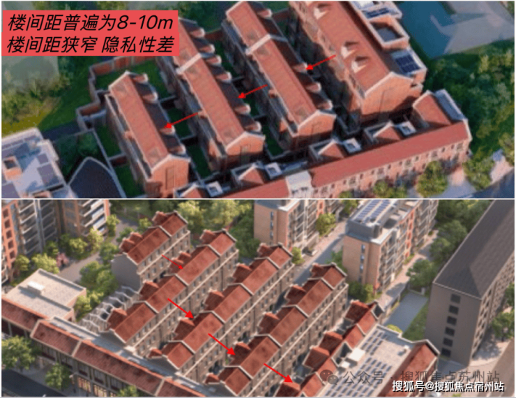 很多市中心低密的风貌别墅,哪怕容积率也在1.2左右,但它们的楼间距并不可观。几乎是在8-10m,宽一点的约12m,楼与楼之间非常紧凑,私密性难以得到保障。