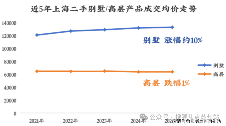 于高净值人群而言,除了居住属性,别墅本质上是对土地资源的占有。也因此,它比普通高层更加保值,近5年成交的价格涨幅一路领跑。