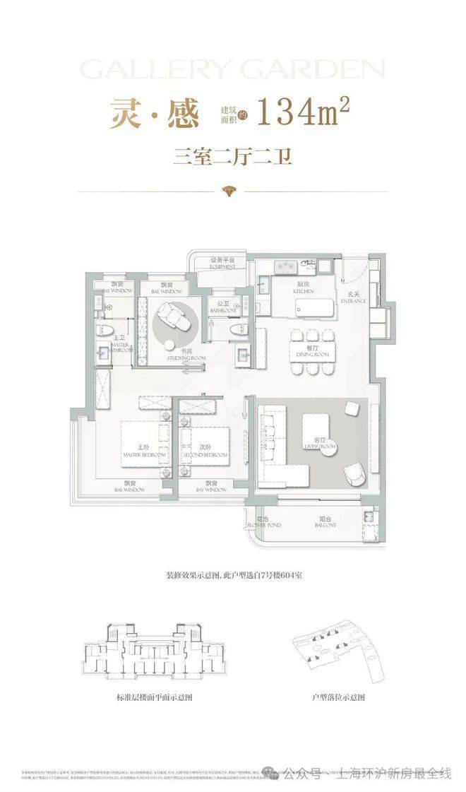 建面约134㎡3房2厅2卫,主力总价约1500-1700万,户型设计在上一个户型的基础上将各功能间尺度升级的同时,也做了一些更人性化的迭新。