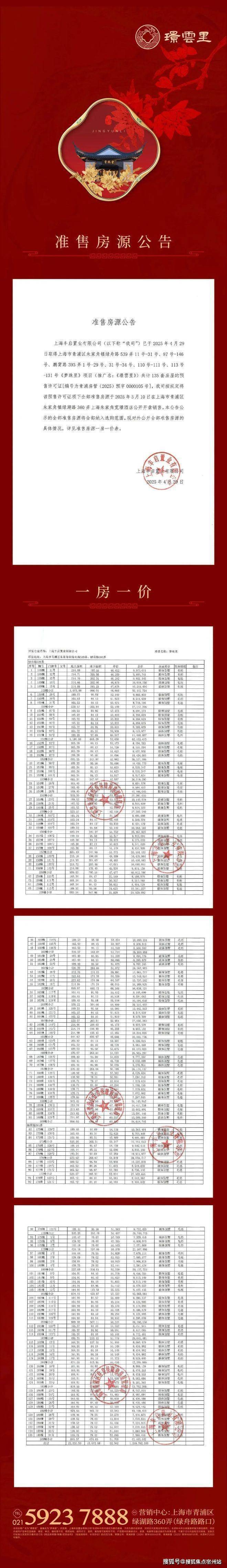 一房一价表如下:璟云里售楼处电话:400-8266-670☎️☎️✅✅