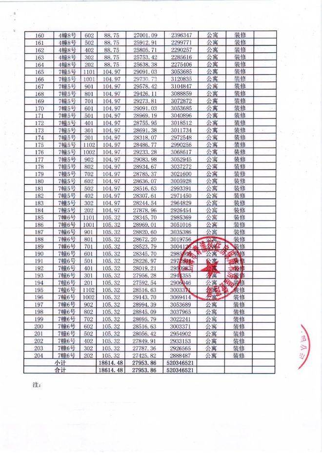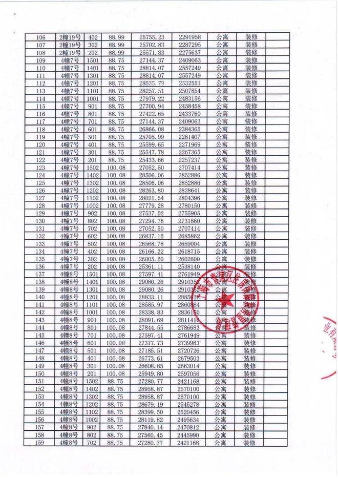 项目一房一价表