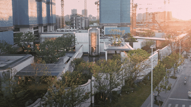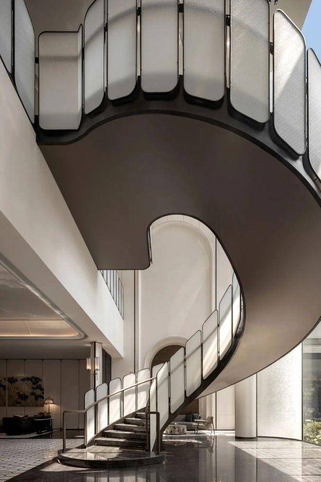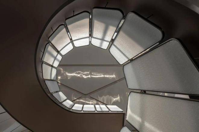项目大胆采用大面积的玻璃等现代材料,不仅延续了弧线设计的流畅性与动态感,还进一步强化了建筑的透明度与轻盈感,构建出一种未来感十足的“弧形玻璃太空舱”概念,在理念上实现了对空间体验的革新,使建筑与环境、自然光、城市景观形成了更加紧密和谐的互动关系。
