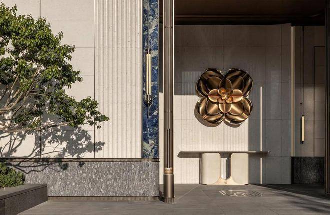 招商臻境示范区带着海派的优雅精致和现代的时尚摩登,讲述了一场与艺术、人文息息相关的故事。作为归家的序章,一抹流金岁月静候于门扉之前——融合海派雅韵的繁花雕塑,悄然绽放。入口传承了海派花园洋房的精致与蜿蜒,如同海纳百川的文化底蕴,源远流长,出繁入静,现代海派生活由此展开。