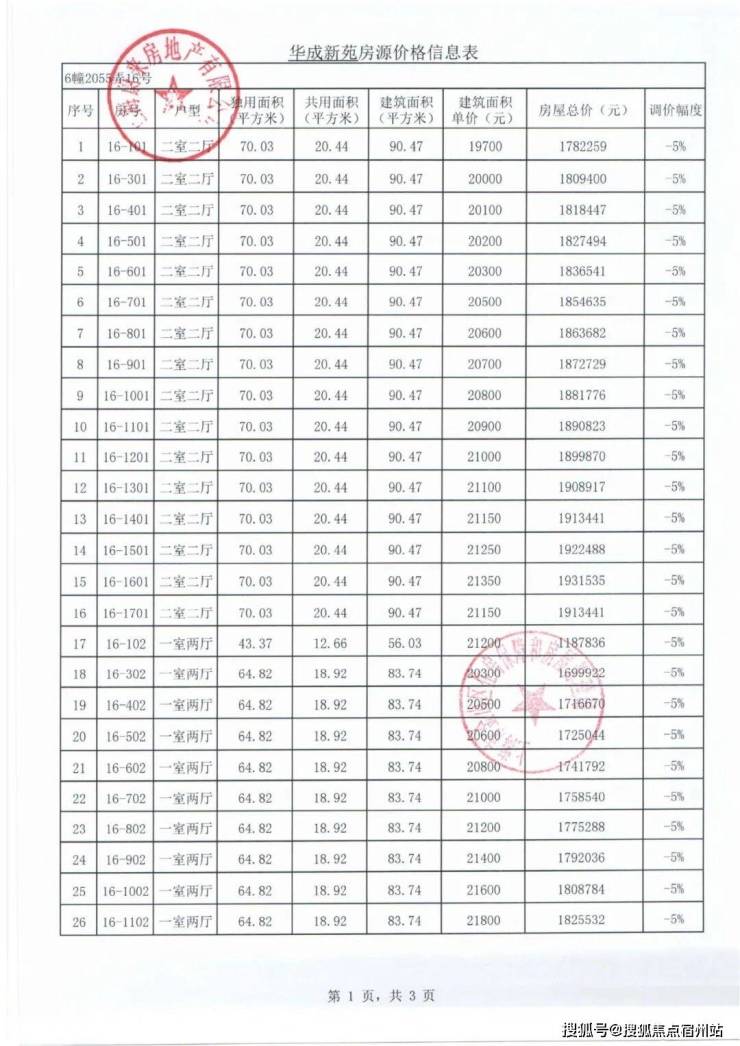 项目一房一价表