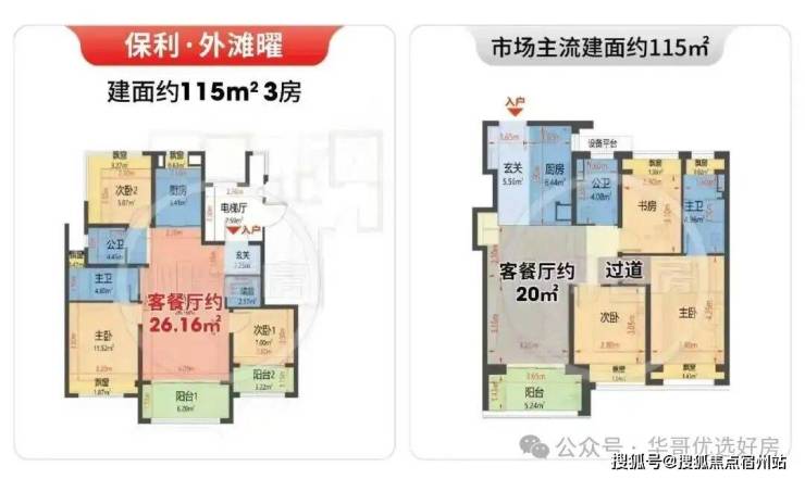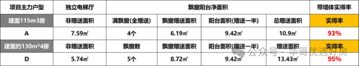 建面约115㎡3房,实得率约93%!常规的同面积产品,也不过约80%上下。