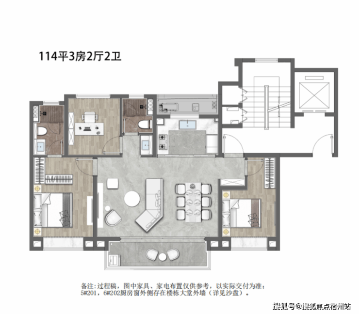 建面约114㎡户型是洋房产品,采光更好,垂直住户少,更清净,居住体验&舒适度更高。