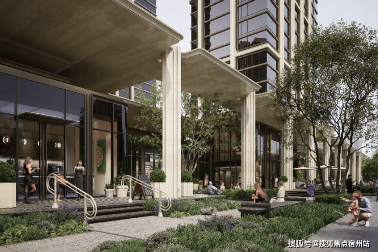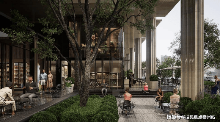 同时,澐启滨江摒弃了传统底层商业的密集布置,而选择以 “非标化”的方式组织生活界面:城市转角以咖啡驿站为节点,形成街角的温度;中段以 组团化的休闲商业点缀,嵌入生活的烟火气;东侧则以社区配套与社交花园收尾,延展人文关怀, 使街区的气质更接近“类公园化”的生活场景,而非传统意义的消费空间。