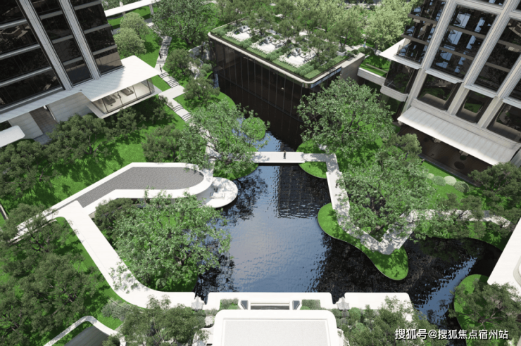 第三重:落差近13米的立体峡谷 :项目最大的亮点之一,是在近万方景观底盘上,打造了落差约13米的“自然峡谷”。通过艺术化的地形处理,将滨江之丘、临江之水“搬”到了楼下,形成令人震撼的视觉冲击。