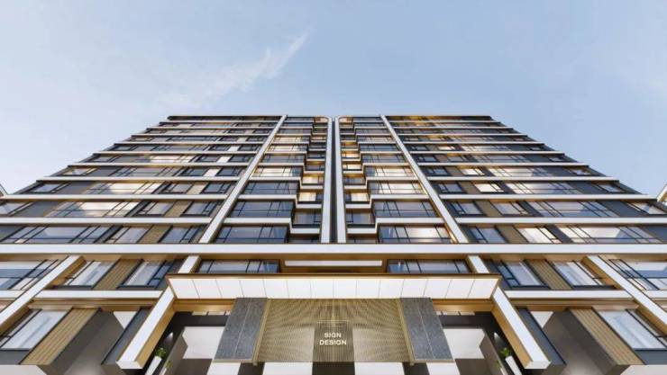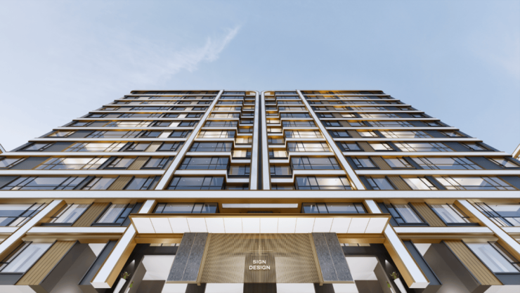 立面色调运用高级香槟金+淡雅白,中空玻璃,映射时代的建筑美学。