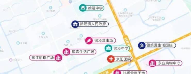 徐泾镇政府、各类政府办事机构、银行、医院等公共配套均聚集在此处!