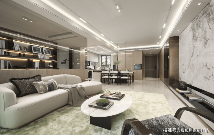 地下空间:告别昏暗的地库印象。地下大堂的设计灵感源自深圳湾安达仕酒店,采用梦幻玉珍珠岩板等高端材质,搭配东方美学的透光云石点缀,打造出五星级酒店般的归家体验。