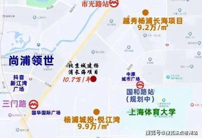 今年3月14日,第一批次首轮土拍中,越秀以总价75383万元,拿下了杨浦区长海社区002-05地块(长海街道340街坊),容积率2.3,溢价率9.58%,楼板价43941元/㎡,房地联动价92000元/平。