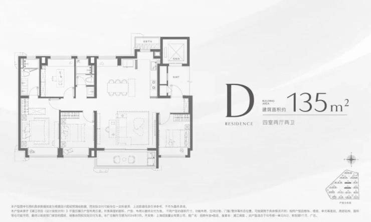 户型D| 建筑面积约135㎡4室2厅2卫