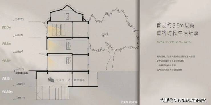 约3.6m首层层高,阔尺采光面。