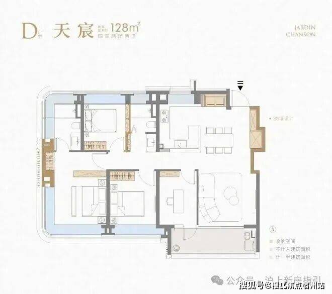 建面约 128㎡4房延续3S墙和双270°全景双舱亮点的同时,尺度感极大提升,南向四开间,保证了更充沛的采光和视野。客餐厅+超大尺度阳台贯穿南北,进门视野无遮挡。