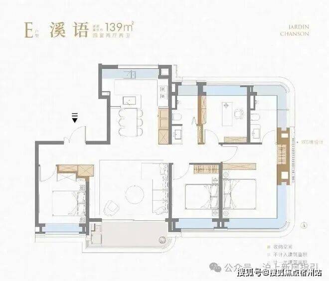 139㎡4房则是集大成的改善户型;该户型是独立电梯入户,保证了业主的私密性和尊贵感。