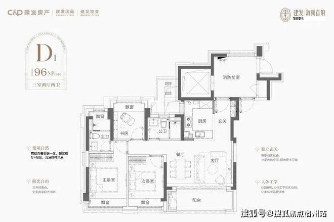 另一套建面约100㎡飞机户型,同样做了三房两卫,户型方正,几乎无过道设计,每一寸空间都没有浪费,舒适不局促。♛♛建发海阅首府售楼处电话:400-8894-638