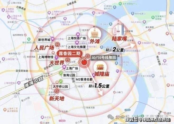 作为上海的绝对市心,露香园直线距离人民广场、淮海路、外滩、豫园等上海市地标性区域均不超过1.5公里,距离陆家嘴直线约2公里。