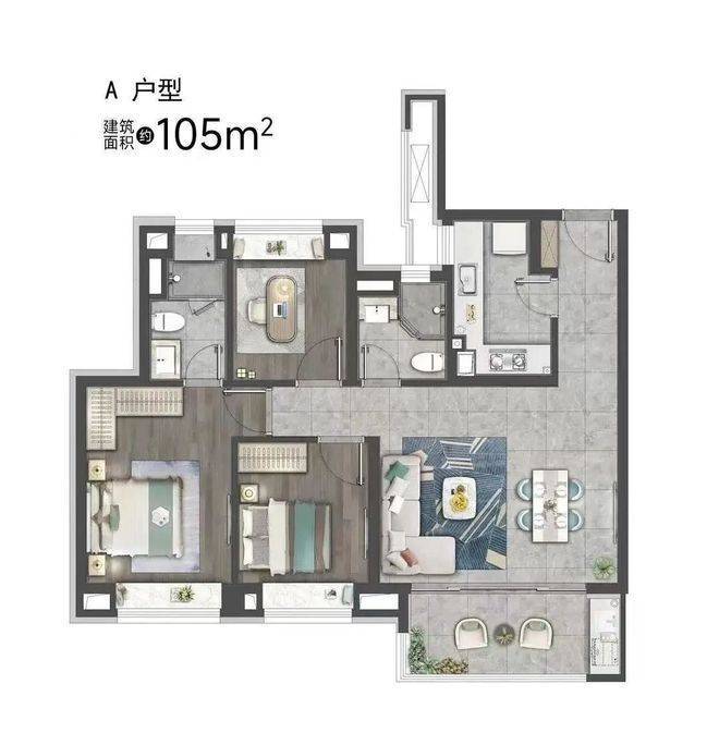 建面约105㎡3房2卫▼