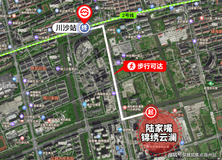 除此之外,陆家嘴锦绣云澜位于川沙首站,距离川沙站直线约750米,步行可达!(数据来源:百度地图)