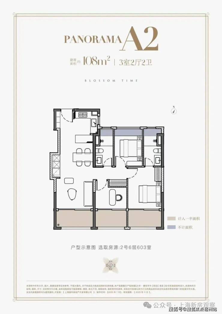 108㎡户型罕见南向三阳台设计,享120㎡空间感: