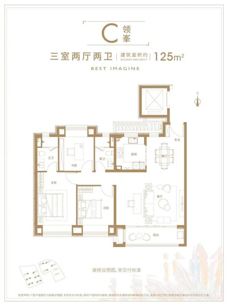 除此之外,项目还有建面约125㎡宽绰三房户型: