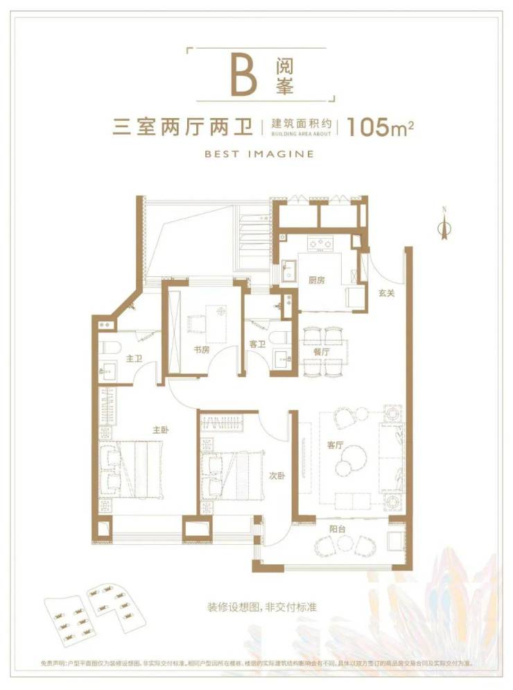 其次,虽然从面积段上来看,这是偏紧凑型的3房户型。