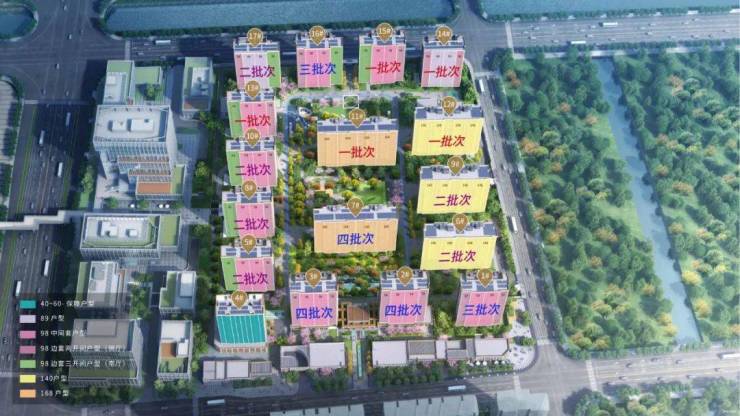 项目总占地面积约6.36万㎡,建筑面积19.5万㎡,容积率2.0,由16栋16-17F住宅、1栋18F保障房及若干配套用房组成。