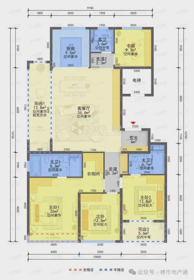 缺点:有一个暗卫,北面书房紧挨着电梯有部分震动噪音影响,主卧进门有一些浪费