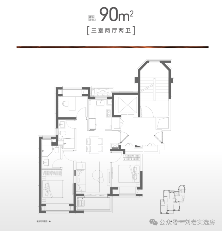 三开间朝南+餐客厨阳台一体化+双卫设计,同时 无过道浪费,加上高标准的精装交付标准,真正实现交付后拎包入住。