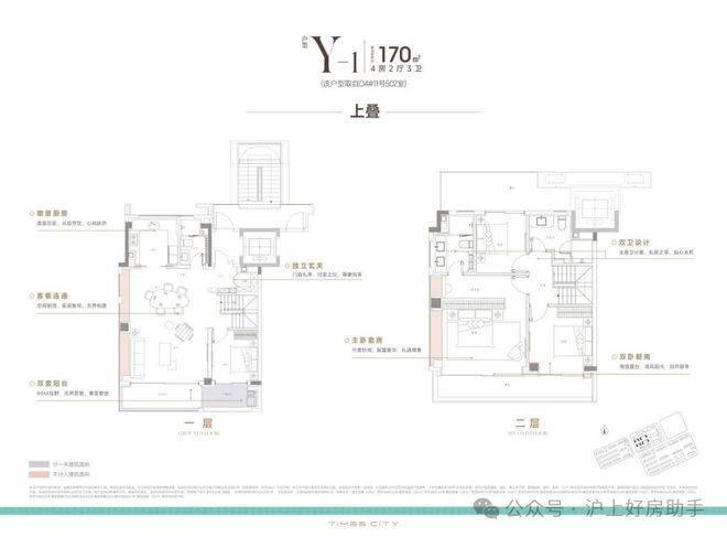 170m²上叠,南向双阳台+南北双露台: