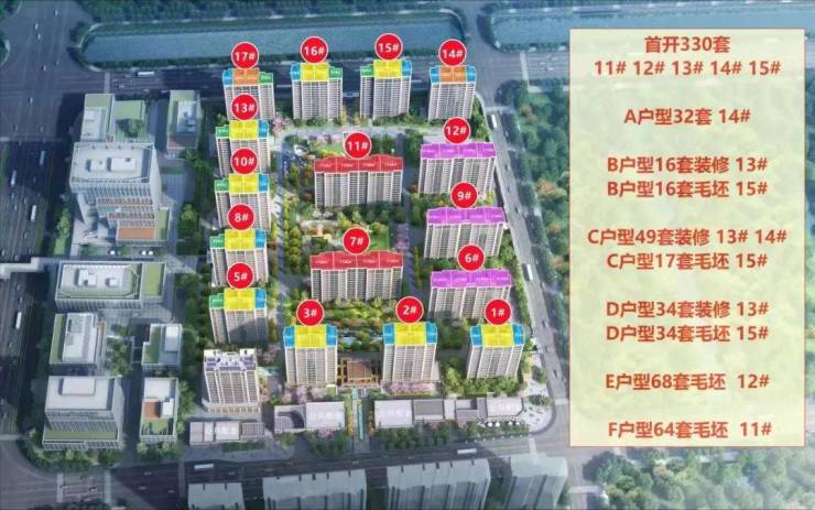项目总占地面积约6.36万㎡,建筑面积19.5万㎡,容积率2.0,由16栋16-17F住宅、1栋18F保障房及若干配套用房组成。